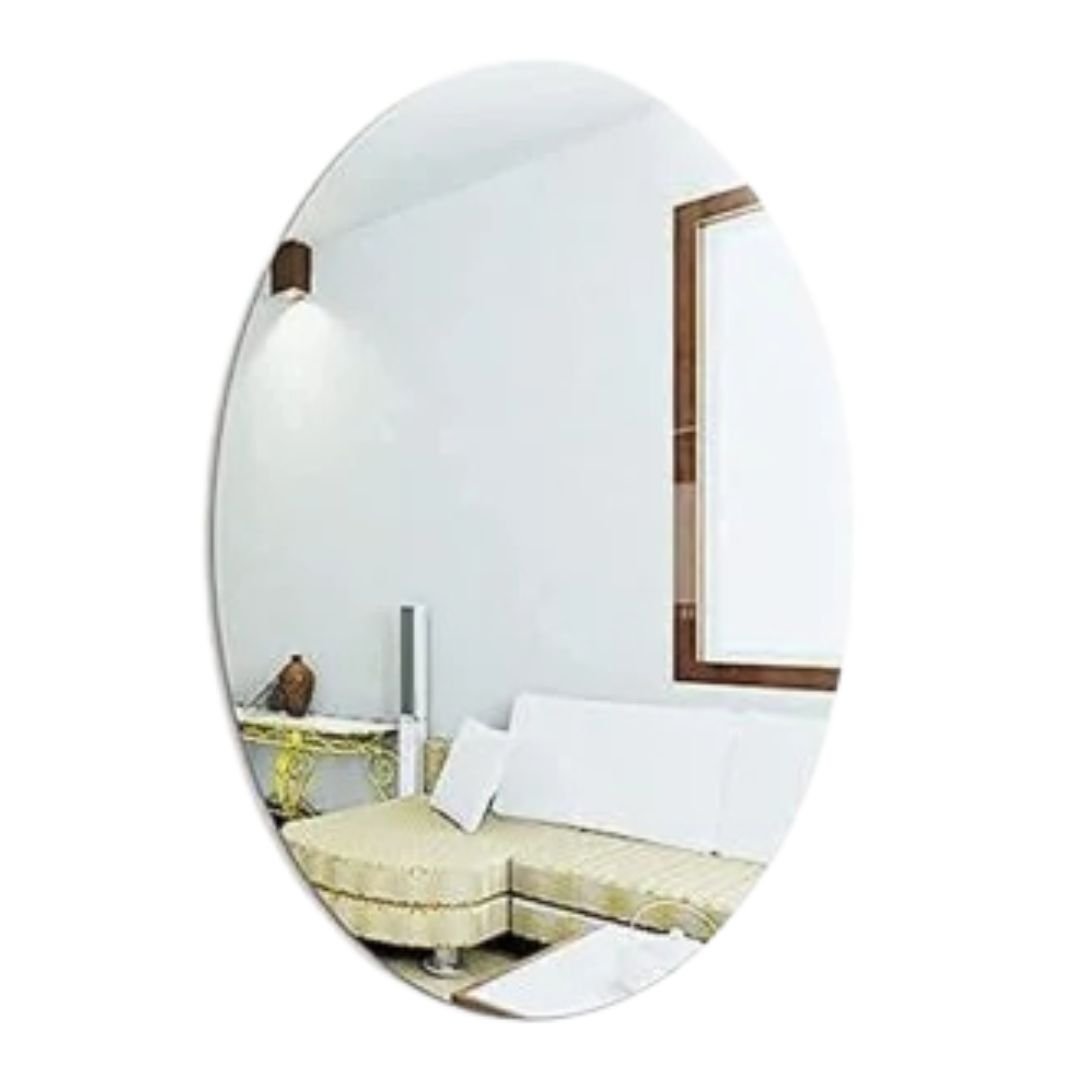 BLUE TICK Flexible Mirror Sheets Self-Adhesive Plastic Mirror Tiles Non-Glass Mirror Stickers for Home Decoration (Oval Shape, 30 cm x 20 cm)