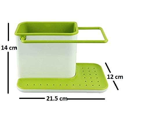 3 in 1 Kitchen Sink Organizer | Plastic Rack for Soap, Sponge, Brush & Dish Liquid