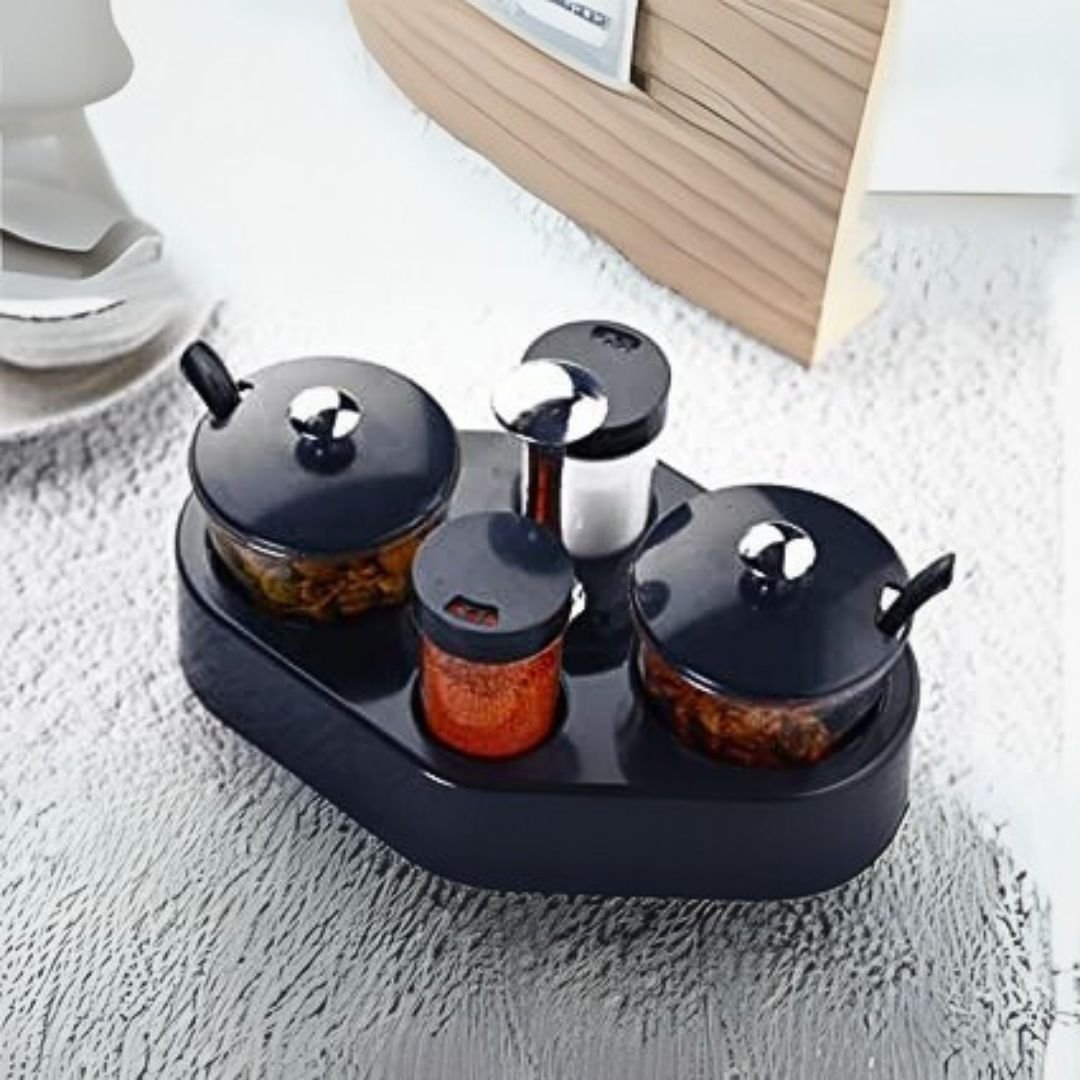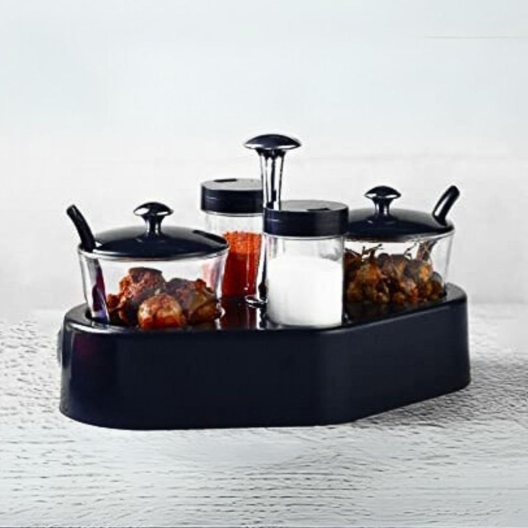 - Provided with easy to use perforated spoons & container lid with knobs for easy access.