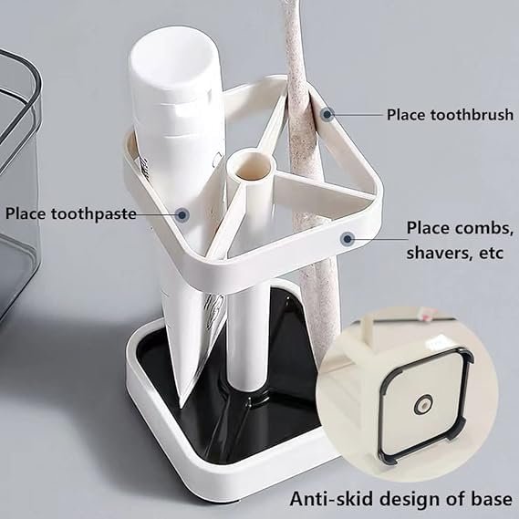 Keep Your Bathroom Organized and Hygienic with Our Toothbrush Holder Stand! This versatile toothbrush holder stand is designed to make your bathroom counter clutter-free and your toothbrushes clean and organized.