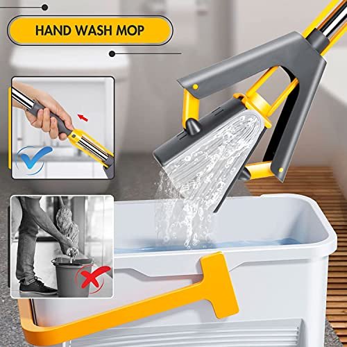 Self-wringing, free your hands. Manual joystick, pull and lift, easy to squeeze water, it keeps your hands away from dirty mop, you can wring effortlessly without bend over, our mop relieves your fatigue and back pain, brings you a better experience.