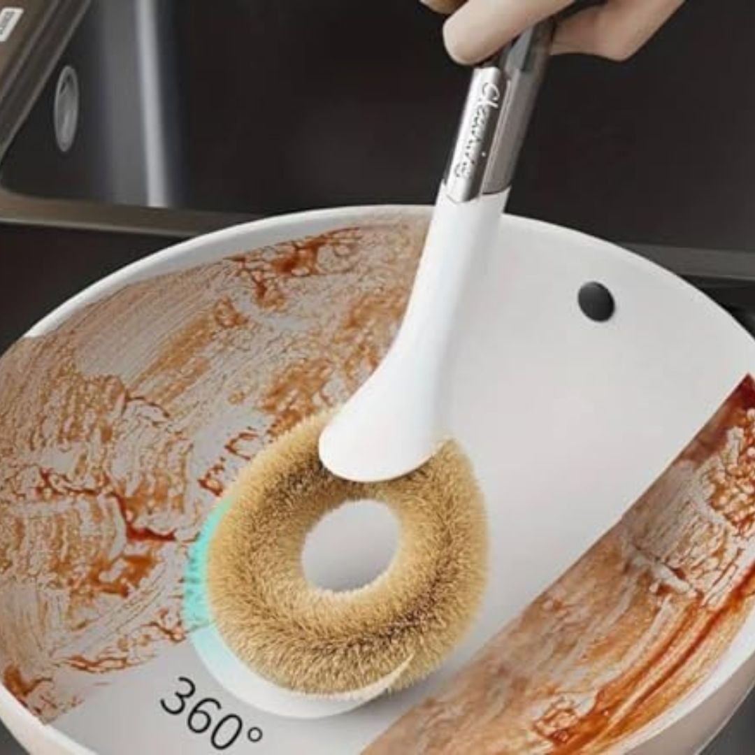 The MySmartiee Coconut Palm Pot Brush is perfect for cleaning non-stick pans and delicate kitchen utensils. With its comfortable handle and long-lasting bristles, it easily removes food stains without scratching. Ideal for effortless cleaning, it also features a convenient hanging design for easy storage.