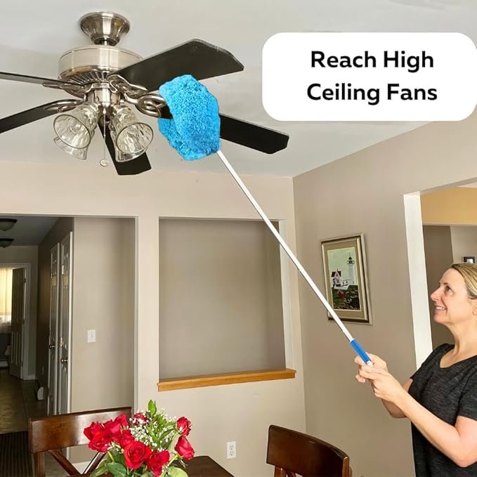 The Round Duster for Ceiling Fan Mop is a practical cleaning tool designed to make dusting high and hard-to-reach areas effortless. Featuring a circular microfiber head, it wraps around fan blades to trap dust and dirt from all sides in a single swipe. The extendable handle allows you to reach ceilings, fans, and corners without the need for a ladder, while the soft, flexible bristles ensure scratch-free cleaning. Lightweight and easy to maneuver, this duster is ideal for maintaining a dust-free home with minimal effort. Plus, the washable head makes it reusable and eco-friendly.